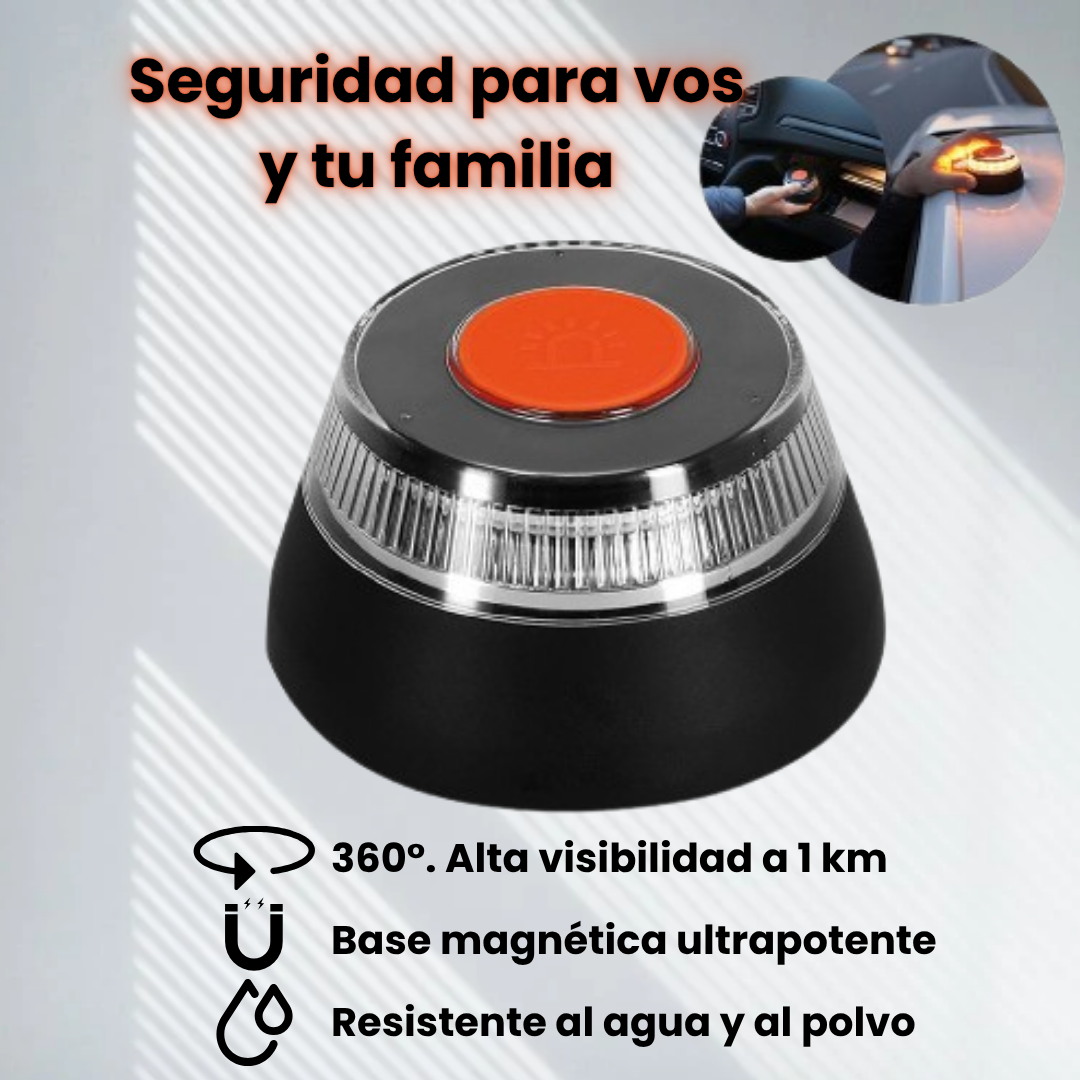 🚗 Sustituye al triángulo de emergencia: Alta visibilidad a 1 km. Abarca 360°.